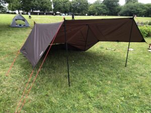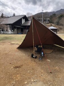 ただし欠点も。タープは火に弱いので、焚き火を近くでやると穴が空きます。