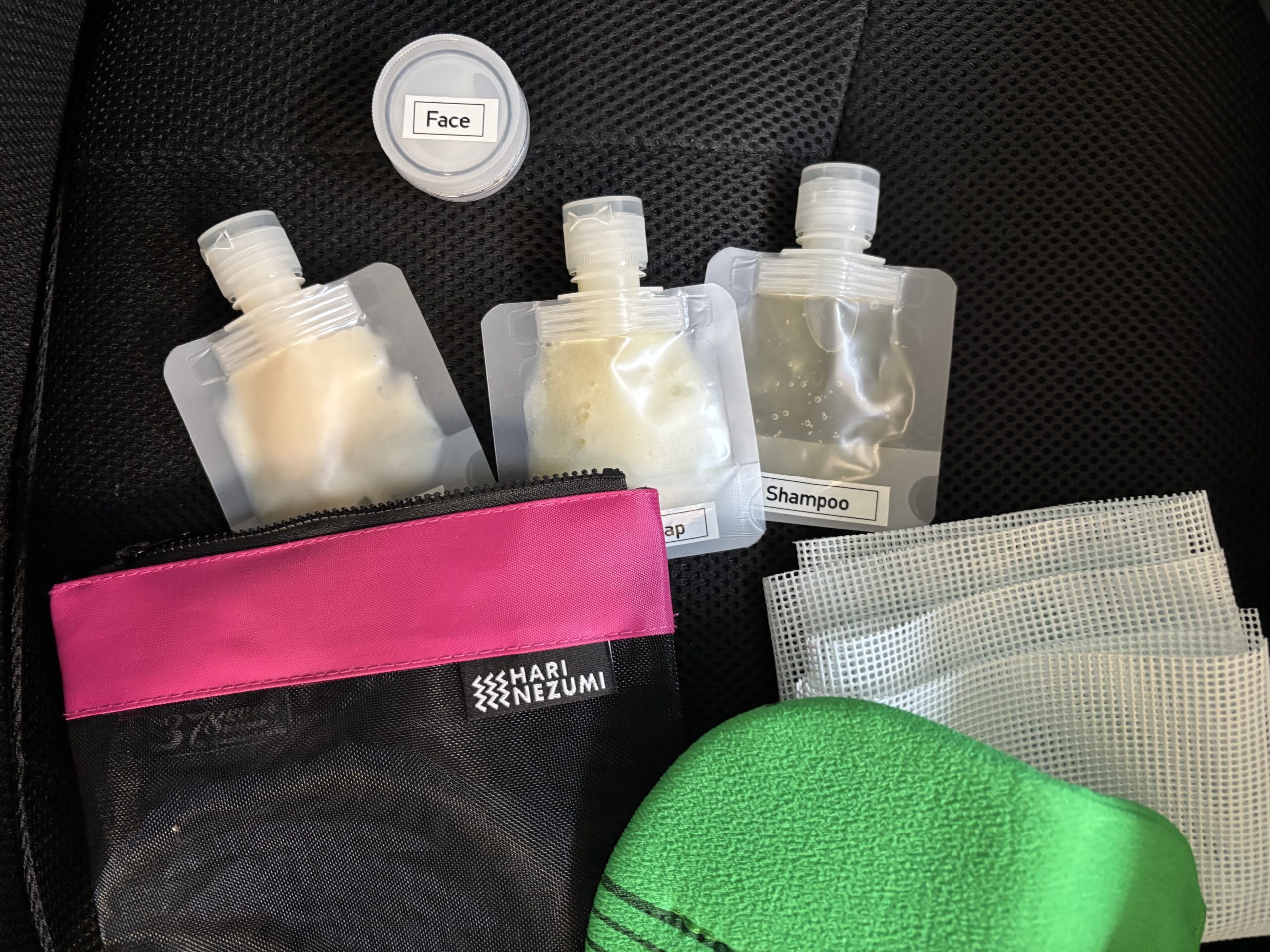 「え、これで足りる?」って思うけど、足りる。むしろ足りる。シャンプーリンスの備え付け施設が多いからね。でも念の為、持っていきたいよね。