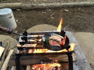 ■ 焚き火に“どん!”食材“どん!”で、ワイルド調理が完成する