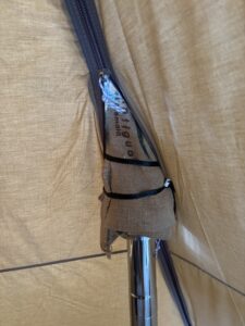 なんとなく心配だったので、「煙突ガード+麻布ぐるぐる巻き」に。無事テントも、ファスナーも守れた。